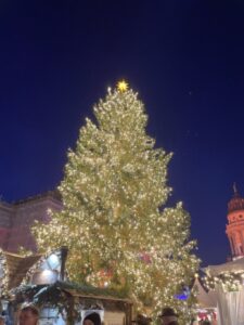 遠目からでもはっきりとわかる、大きく美しい大聖堂とクリスマスツリー。